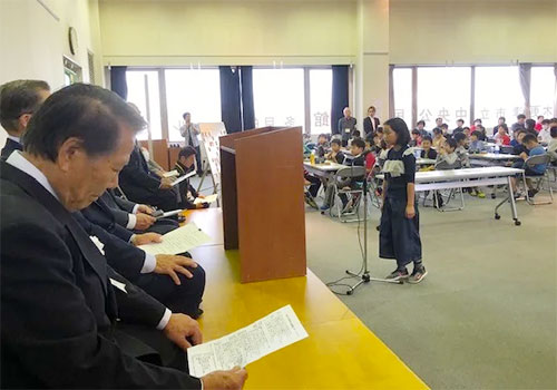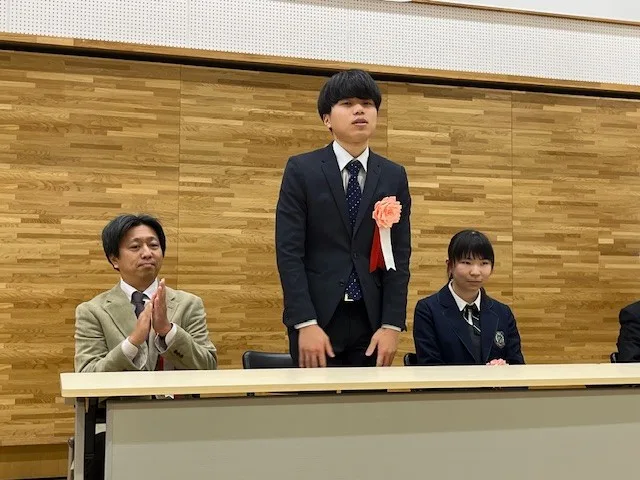 開会式では、木更津総合高校のクラブ員による和太鼓演奏、日本将棋連盟千葉県支部連合会長 吉田友哉様の祝辞、高橋佑二郎四段の挨拶、中森大夢さんの選手宣誓などが行われました。