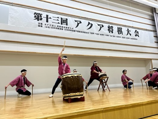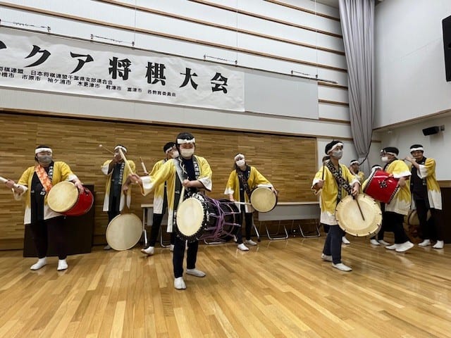 当日は、県内外(京都や宮城県など)から123名のプレイヤーが集結しました。開会セレモニーに「君が代」独唱を渡邉百々香さん、「和太鼓演奏」を木更津総合高校の7名の部員により幕開け、実行委員長の松本璣より主催者挨拶、千葉県議会議員 高橋浩様の祝辞、島朗九段より激励のお言葉、前回第11回大会の覇者樋口達志氏から優勝杯の返還、選手宣誓で金田小学校6年、中森大夢君の今大会への力強いメーセージが発せられました。